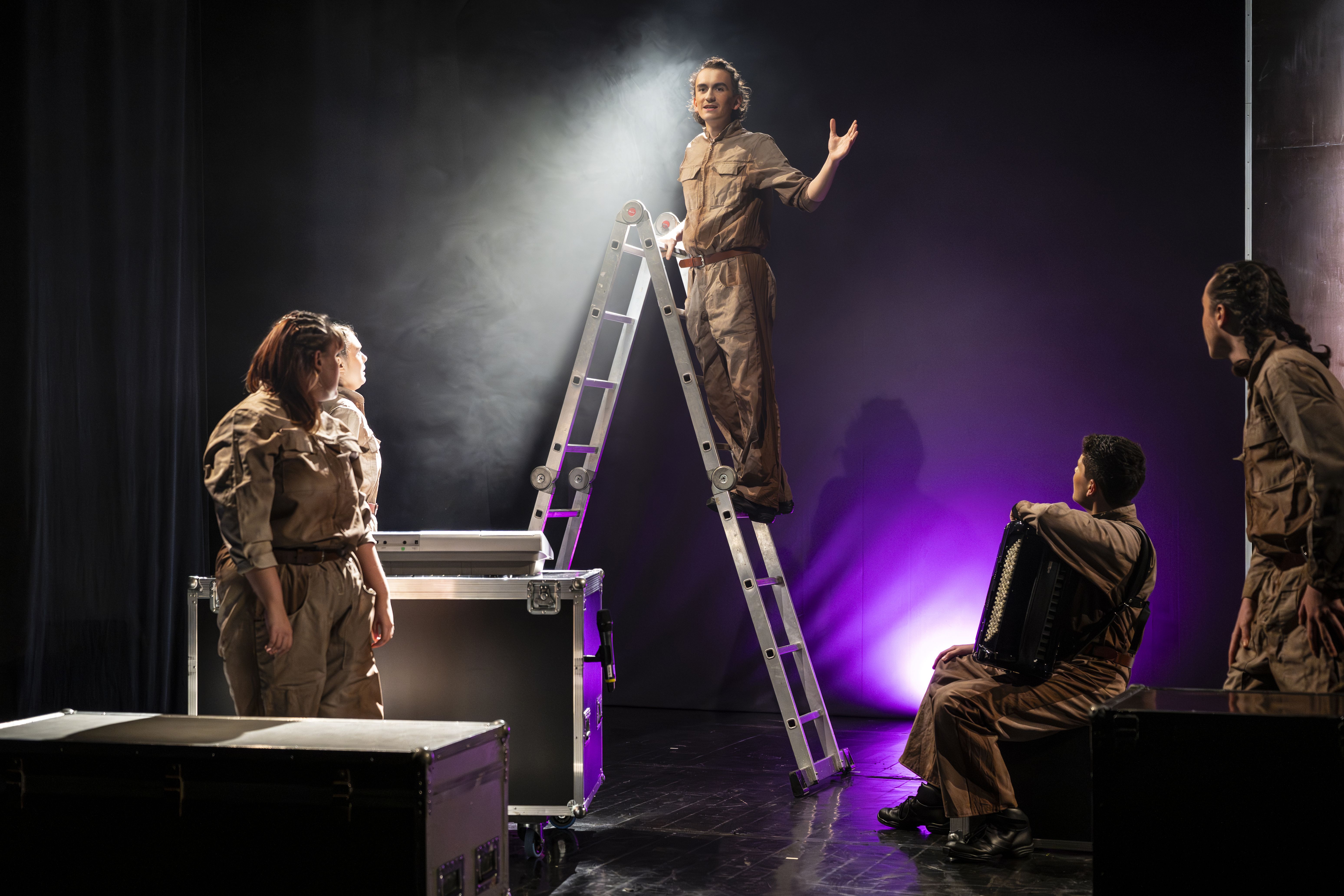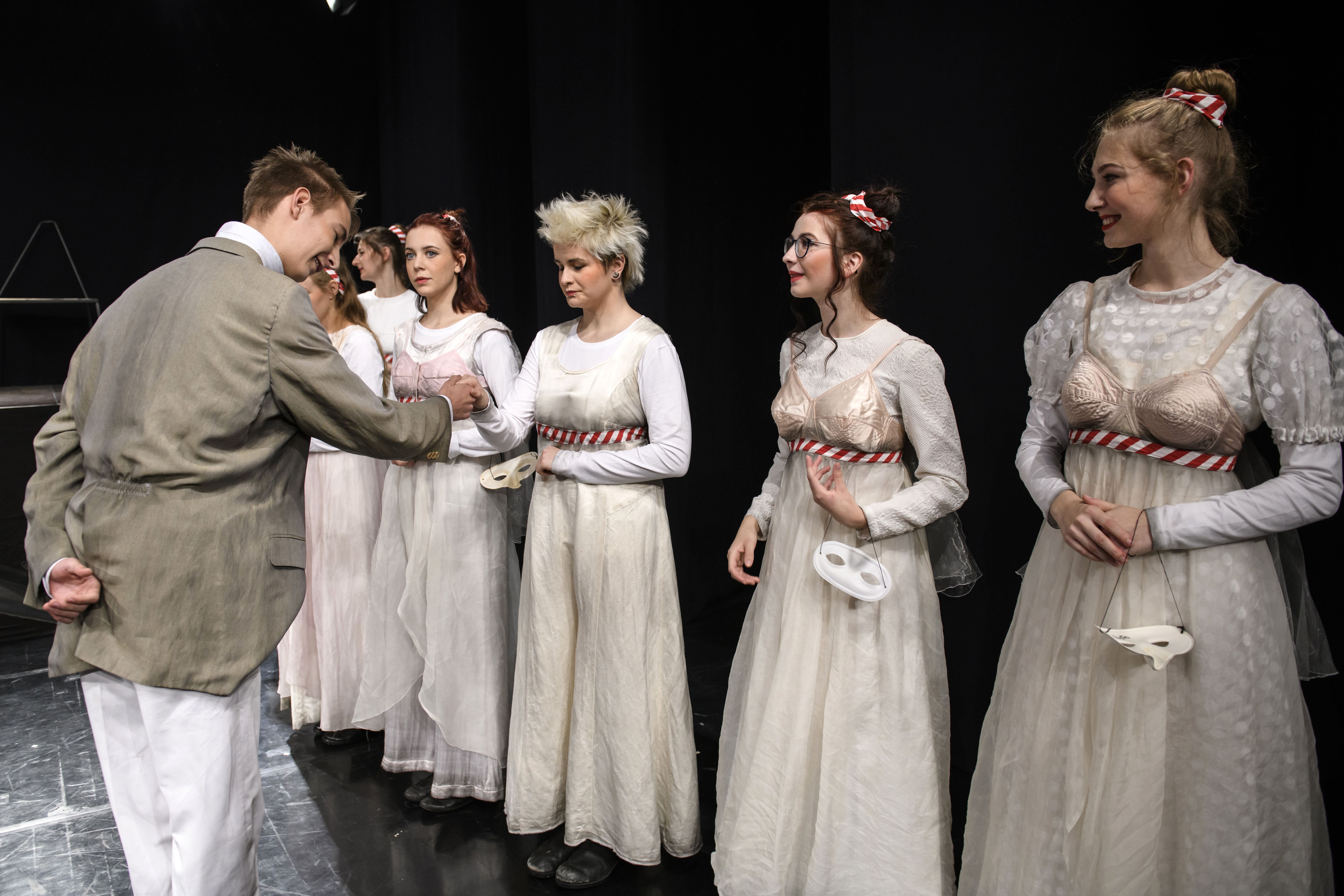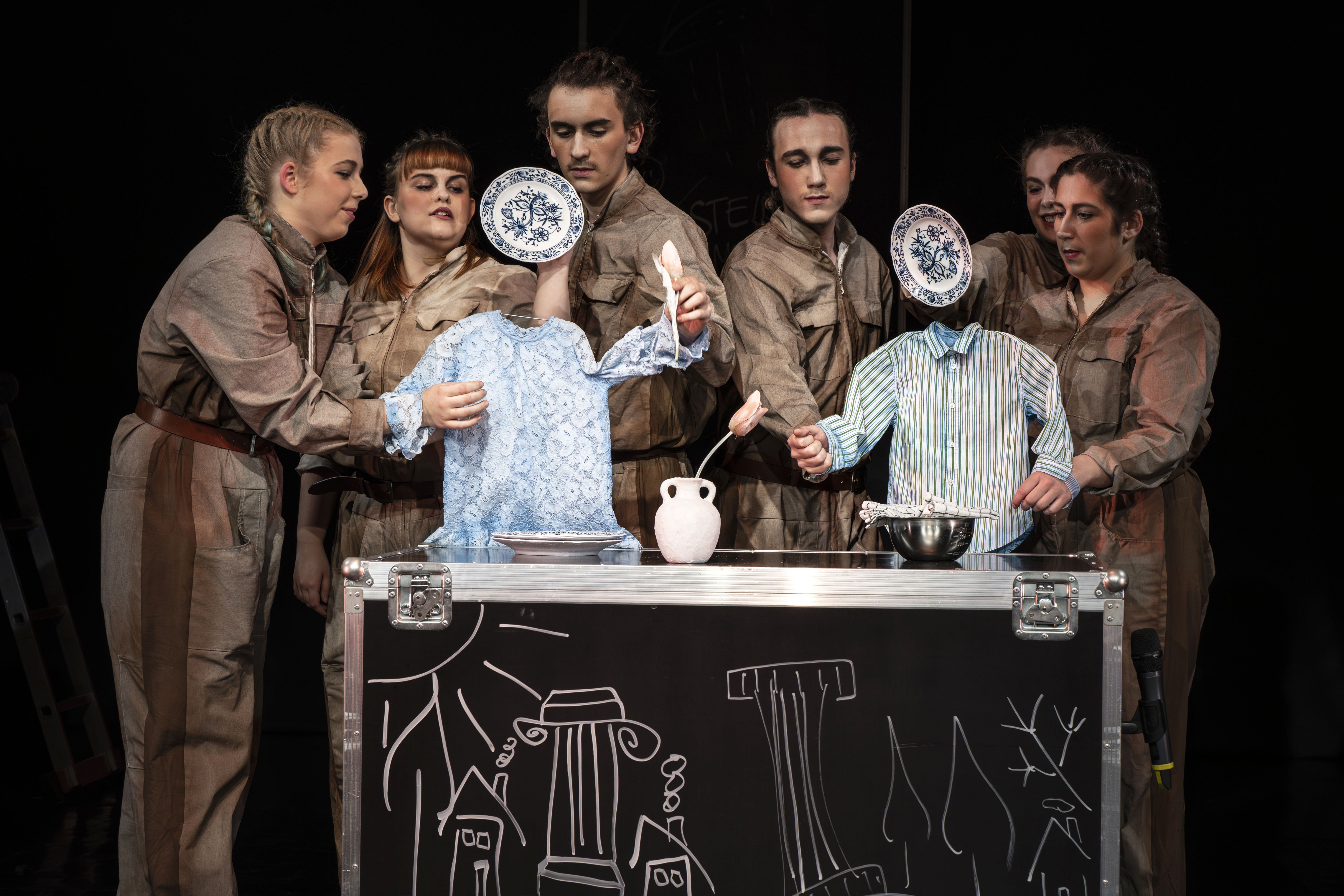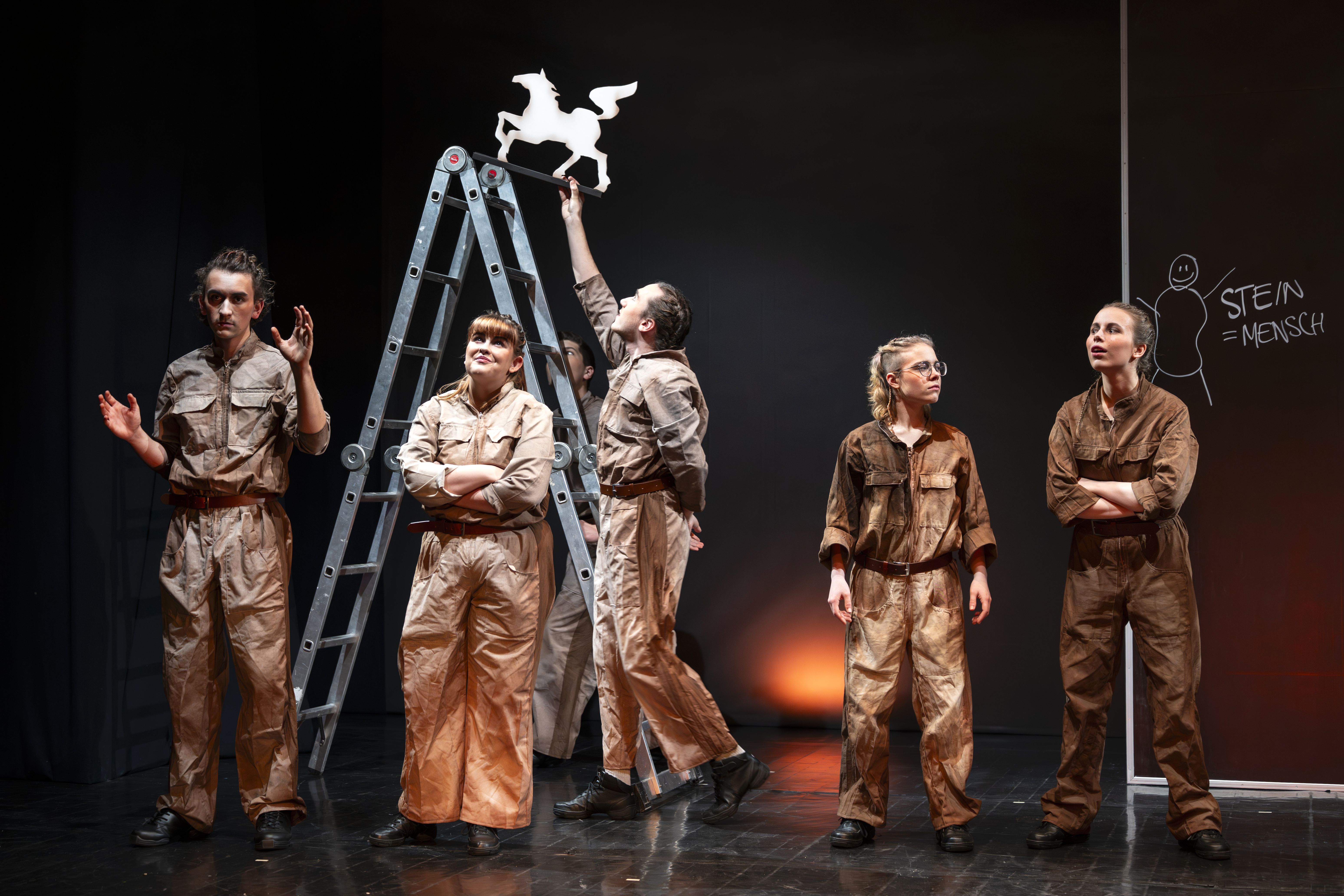 Unsere Theaterfassung bringt eine Auswahl dieser Verwandlungsgeschichten auf die Bühne. Mit Sprache, Körper und mit Alltagsdingen entsteht eine lebendige Bühnenwelt, in der die Mythen der Antike zu gegenwärtigen Bildern werden: