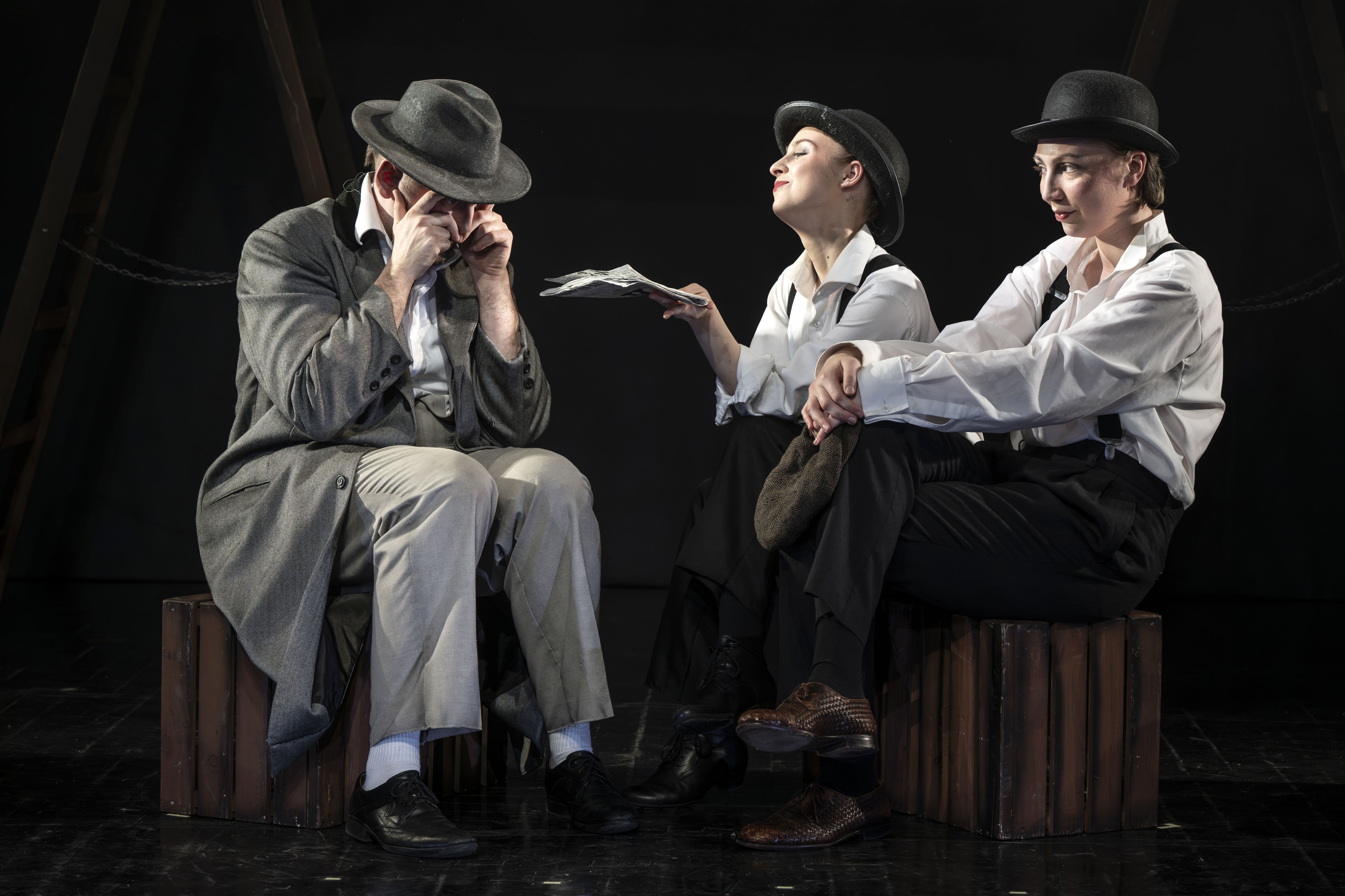 In diesem Spionage-Krimi-Vergnügen schlüpfen 5 Darstellende in über 30 verschiedene Rollen, wechseln 75 plus minus 2 mal die Kostüme, jonglieren mit einem Haufen Requisiten und lüften so das Geheimnis der 39 Stufen. Echt Hitchcock!