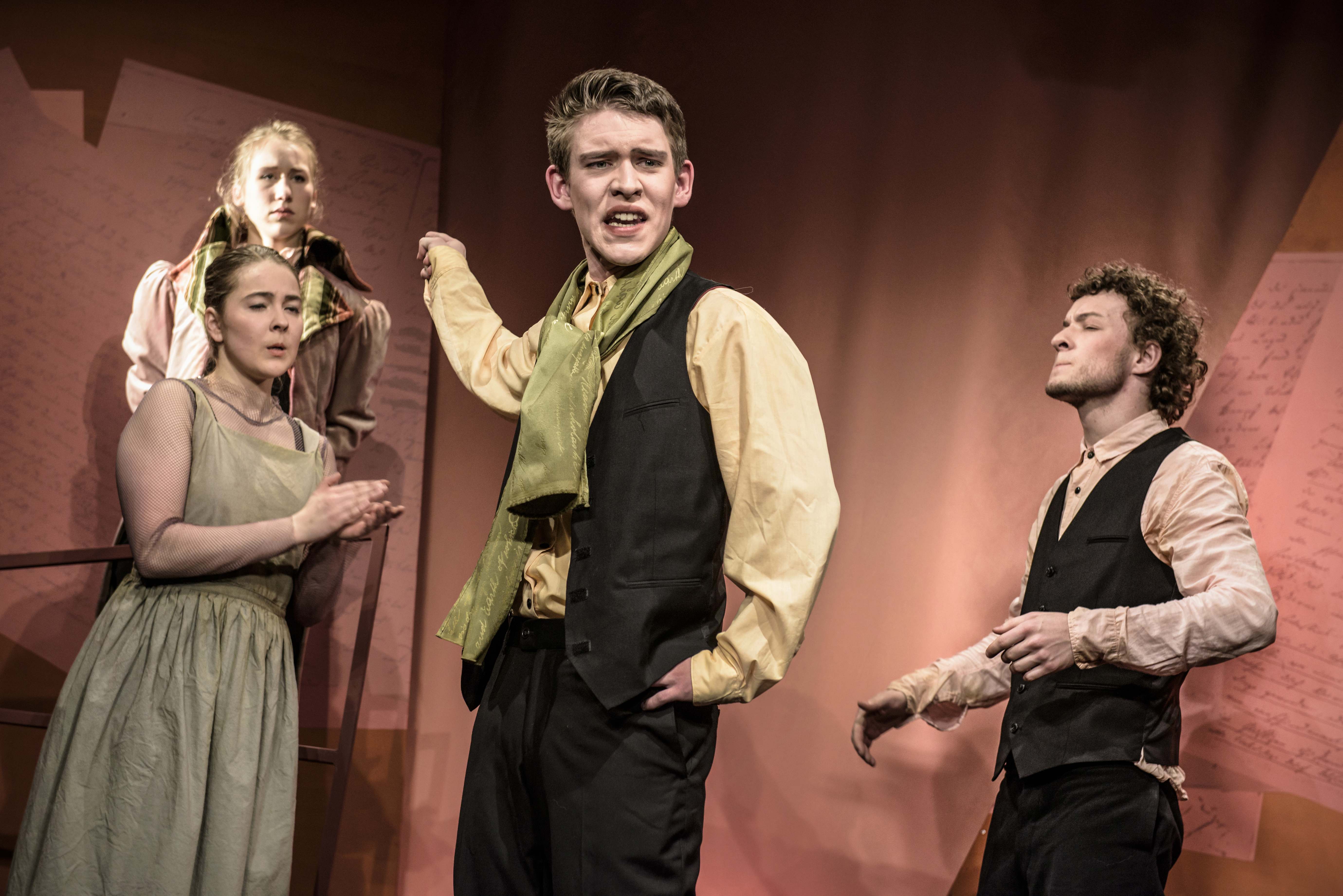 Georg Büchner – ein Mann auf der Flucht. Unruhig, getrieben, gehetzt und steckbrieflich gesucht. Dazu hochtalentiert, ein (vor)witziger Schüler und ein glänzender Redner, als Student voller Feuer und als Autor ein genialer Kopf. Bei seinem Tod mit nur 23 Jahren hinterließ er Texte und Dramen, die es noch heute in sich haben. In rasanter Szenenfolge machen wir uns auf die Spur dieses jungen Mannes, der die deutsche Literatur buchstäblich über Nacht revolutionierte. Wir folgen ihm nach in die Studentenbude, ins Elternhaus, in die Kammer der Geliebten, in die Wirtshäuser und auf die Polizeistation. Überall kein langes Aufhalten, rein und raus und schon wieder woanders. Und so wechseln auch unsere 4 Akteure ständig die Rollen. Dazwischen die Einsprengsel aus seinen Dramen und seinen wissenschaftlichen Schriften, Sätze, scharf wie Messer. Georg Büchner – der Mediziner, der Naturwissenschaftler, der politische Revolutionär, der überragende Dichter und in allem – eine Feuerseele!