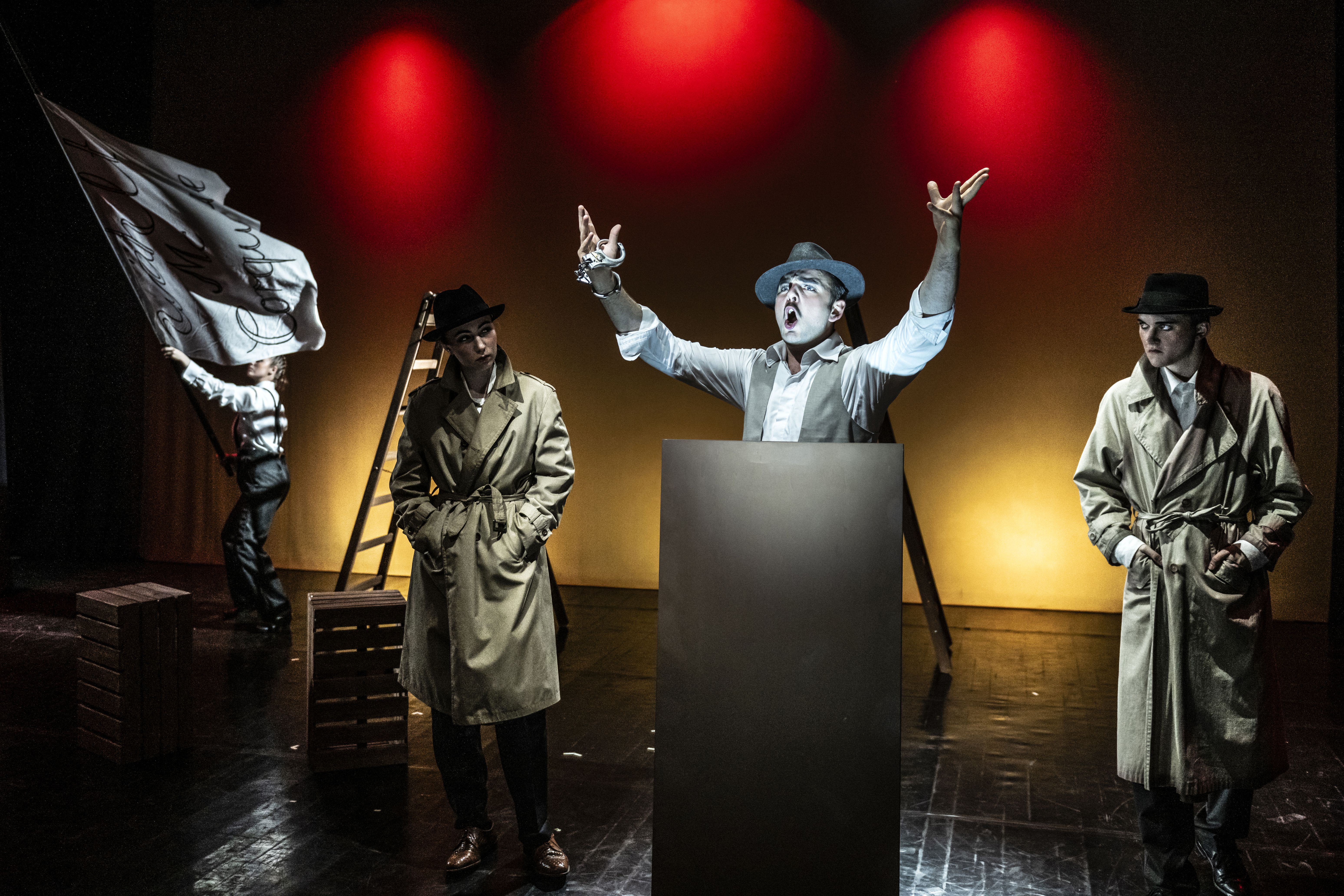 In diesem Spionage-Krimi-Vergnügen schlüpfen 5 Darstellende in über 30 verschiedene Rollen, wechseln 75 plus minus 2 mal die Kostüme, jonglieren mit einem Haufen Requisiten und lüften so das Geheimnis der 39 Stufen. Echt Hitchcock!